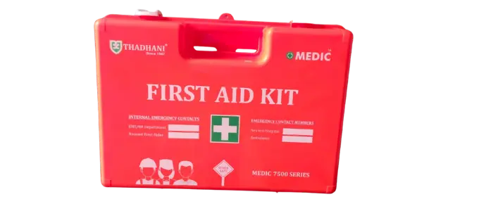 Antiseptic Cream, Antiseptic Liquid (savlon-rapaid) , Antiseptic Swabs , Bandage Triangular, Band Aid, Burn/Trauma Sheet, Burn Spray, Burn aid gel/cream, Cotton Buds , Crepe Bandage, Non Adherent Dressing, Adhesive Dressing Tape, Sterile Eye Pads , Eye Refresh, Eye Wash Bottle, Sterile Eye Wash, Gauze Bandages (conforming), Gauze Bandages (conforming), Gauze Swabs, Disposable Gloves, Hot / Cold pack, Instant Ice, First Aid Pamphlet, Rescue Blanket, Resus Face Shield, Safety Pins, Scissors, Set of Plastic Bags (s/m/l), Splinter Forceps, Disposable